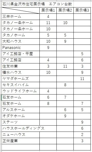 そこで木花家近隣の住宅展示場のエアコン台数を調査しました